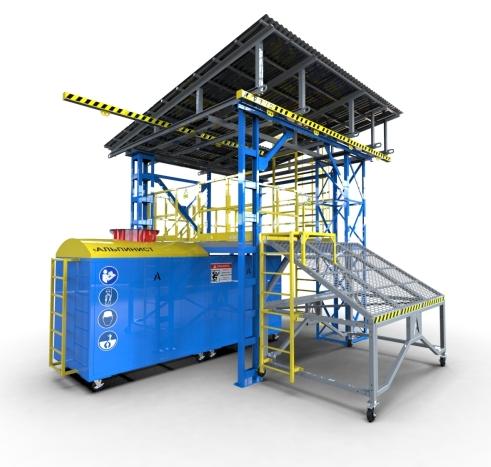 Конструкция полигона – стальная, состоящая из сварных модулей, каждый элемент проходит сложную пескоструйную обработку, а затем покрывается полимерным покрытием. Все модули собираются и крепятся на болтовые соединения.
